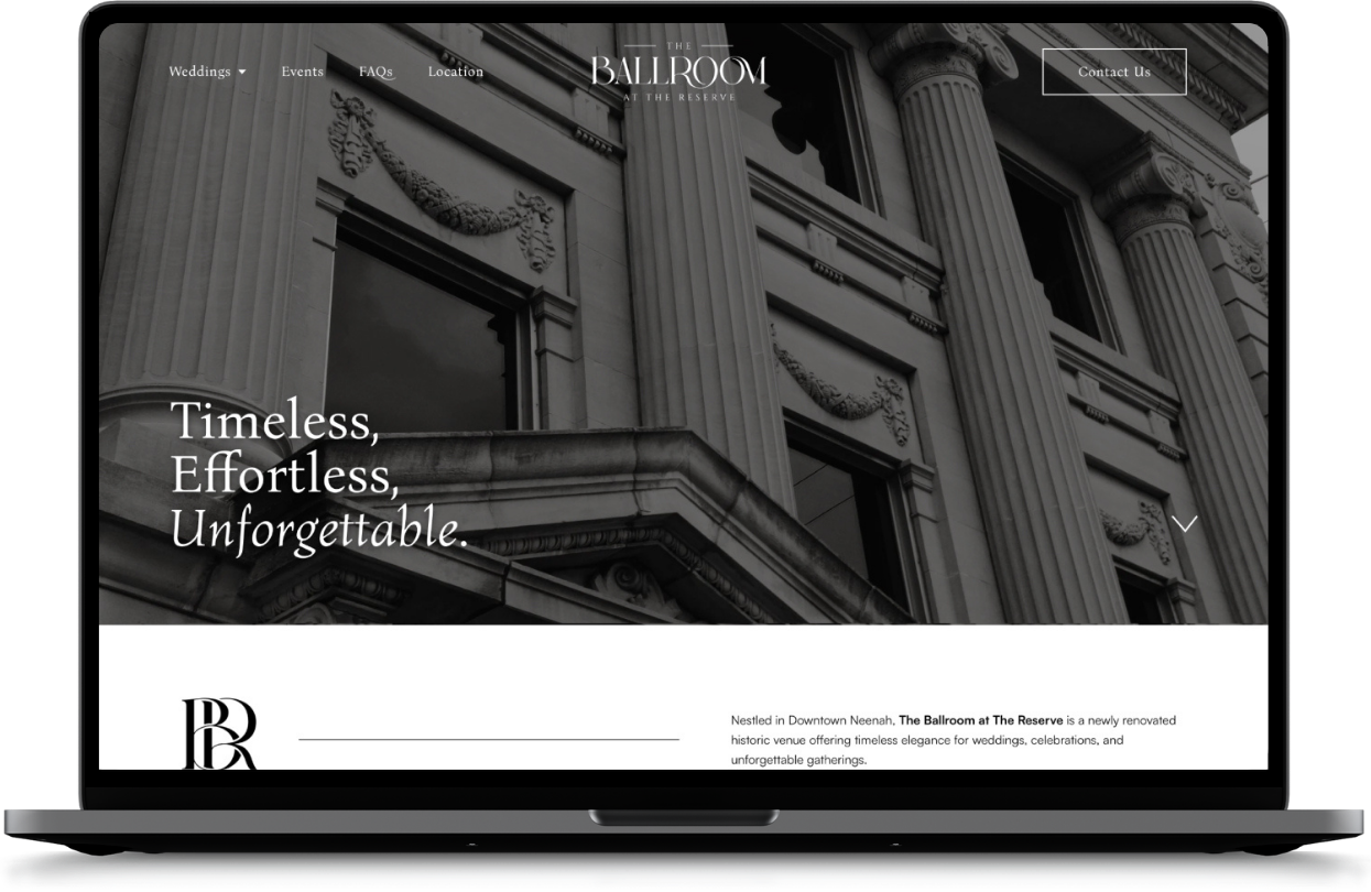 The Ballroom’s previous website featured strong content, but much of it was hard to find, with key pages buried behind multiple clicks. The redesign focused on improving organization & usability by restructuring the sitemap, navigation, and dropdown menus to make all content easily accessible. In addition, the site was optimized for SEO & AIO, and the visual design was elevated to feel more refined and polished to better reflect the venue’s historic character and elegance. The result is a website built to engage visitors, drive inquiries, and convert interest into tours and bookings.